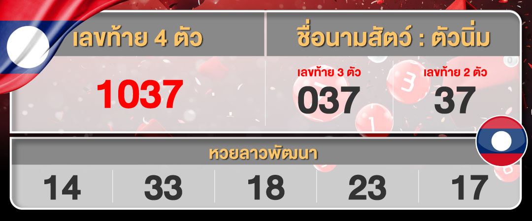 - รางวัลเลขท้าย 4 ตัว : 1037